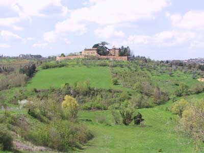 Si trova su una collina di fronte a Siena, che dista 2,5 Km in linea d'aria: